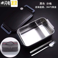三维工匠304不锈钢分格饭盒学生简约带盖餐盒上班族餐盘保温袋分隔便当盒 黑色分格+保温袋送304勺筷盒