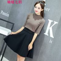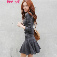 锦铭七玥18春秋冬新品磨毛打底衫修身显瘦长袖连衣裙腰抽折百搭太阳裙女装