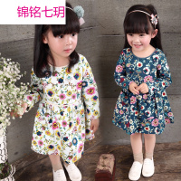 锦铭七玥童装女童2016春装新款韩版圆领碎花太阳花图案连衣裙A字裙公主裙