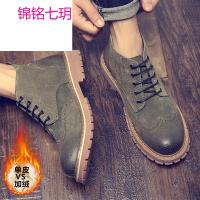 锦铭七玥冬季潮男靴子高帮马丁鞋擦色真皮磨砂猪巴戈马丁靴男加绒棉靴短靴