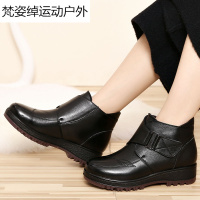 秋冬妈妈棉鞋新款坡跟防滑厚底女靴子加绒保暖短靴中老年