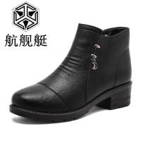 妈妈棉鞋秋冬季新款女士短靴粗跟防滑棉皮鞋加绒保暖中老年女靴子
