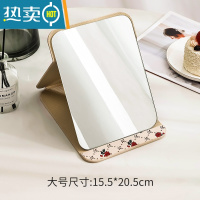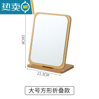 敬平ins简约木质网红镜子台式化妆镜少女桌面梳妆镜折叠学生宿舍便携 [大号方形折叠镜]便携式用镜