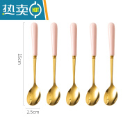 敬平水果叉不锈钢水果签果插轻奢高端蛋糕叉甜品叉儿童小叉子 [可爱粉金]不锈钢陶瓷柄勺×5只