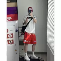 美式红色棒球短裤男夏季高街潮牌刺绣五分裤宽松直筒篮球运动裤子