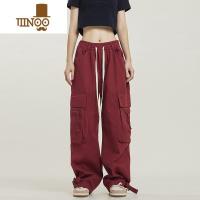 YANXU美式复古红色工装裤男潮牌hiphop街舞裤阔腿裤休闲直筒裤女款