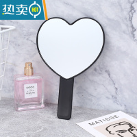 敬平手持镜ins风少女心学生宿舍美容美妆手柄便携随身便携梳妆小镜子 [心形黑色]尺寸约18*12.5cm便携式用镜