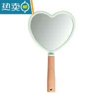 敬平欧式复古手柄化妆镜手拿手持美容院美容镜子便携随身纹绣用品工具 木柄-草绿心形便携式用镜