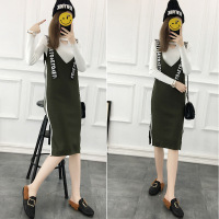 薇侣2017新品秋冬韩版毛衣针织吊带背心裙中长款修身开叉V领连衣裙