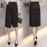 珂依舍2017秋装新款秋冬韩版修身双口袋半身裙中长裙包臀裙一步裙后开叉裙包裙