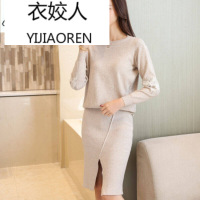 衣姣人(YIJIAOREN)新款韩版2018加厚大码七针包芯纱子开叉裙毛衣套装