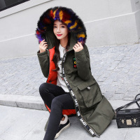 2017秋冬新款羽绒棉服女韩版中长款时尚宽松大彩毛领棉衣外套