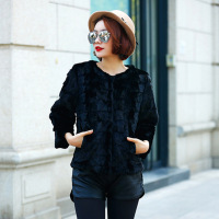 海宁水貂皮草外套女短款修身2017秋冬新款中长款整拼貂彩貂毛特价