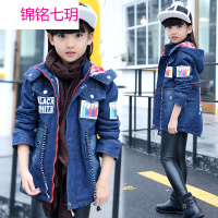 锦铭七玥童装2017冬季新品休闲时尚小学生潮流彩铅笔加绒牛仔中长款大风衣