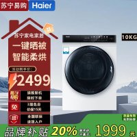 海尔 EHG100FMATE7WU1 冰雪白热泵烘干机 前开式10千克低噪有屏设计 三口之家理想选择 三年质保