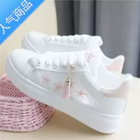SUNTEK网面运动鞋女夏季薄款透气白色网鞋百搭厚底小白鞋镂空老爹凉鞋子
