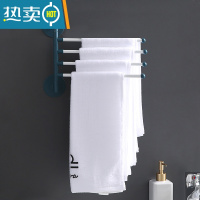 敬平多功能毛巾架免打孔挂架卫生间浴室置物架折叠旋转毛巾杆多层架子 蓝色四层