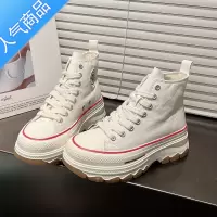 SUNTEK厚底高帮帆布鞋女2023新款韩版运动休闲鞋增高系带圆头板鞋小白鞋