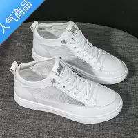 SUNTEK头层网面高帮小白鞋子女夏透气2023春秋新款百搭镂空平底板鞋
