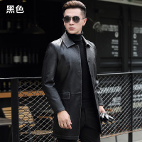 海宁长款真皮绵羊皮皮衣男新款皮夹克修身韩版外套潮流黑色