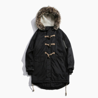 CZS港仔冬季新款青年宽松长款牛角扣毛领棉衣男士棉服外套潮