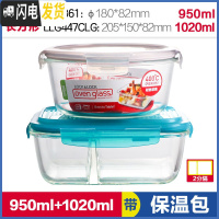 三维工匠玻璃保鲜盒便当盒微波分隔饭盒上班族透明饭碗耐热两件套 蓝色1020(2分隔)+圆950