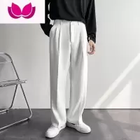 七斓韩国网红垂坠感直筒西装裤男宽松韩版休闲白色阔腿长裤拖地裤