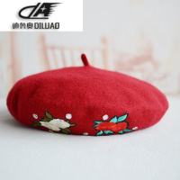 新款韩国羊毛呢蓓蕾帽子女秋冬天女士南瓜画家帽刺绣玫瑰花贝雷帽