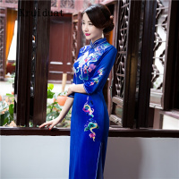 Kruidvat 奈琴尔2016秋冬新款旗袍长款短袖复古改良中式走秀表演出小清新礼服 SKY