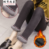 -加绒加厚牛仔裤女长裤保暖新款弹力拼接兔毛小脚裤