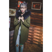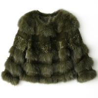 旗下秋冬季新款皮草女狐狸毛兔绒拼接短款外套99军绿色
