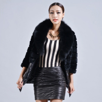 冬季皮衣 兔毛拼接翻领兰狐领绵羊皮皮衣女 中长款真皮皮衣 女式