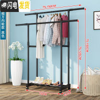 三维工匠落地晾衣架单杆式挂衣杆室内简易衣架家用卧室衣服架子阳台凉衣架 热卖??[可放10双鞋]——黑色双层110 晾衣杆