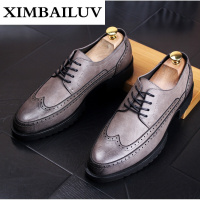 春季新款男士英伦皮鞋潮流百搭男低帮布洛克板鞋男休闲鞋厚底男鞋