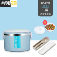 三维工匠多层饭盒套装上班族大容量不锈钢微波炉便当盒学生带饭餐盒保温桶 蓝色[单层+餐具]