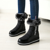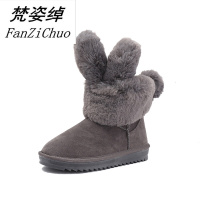 2017冬季兔毛毛短筒雪地靴女棉靴子学生厚底棉鞋侧拉链保暖过冬靴