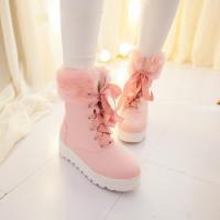 甜美中学生厚底系带短筒雪地靴女冬靴子日系棉靴毛毛短靴大码女鞋