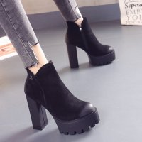 磨砂短女秋冬防水台高跟真皮粗跟厚底女靴小码欧美百搭加绒马丁靴