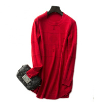山羊绒衫女中长款高端新款春秋毛衣裙厚打底针织羊毛连衣裙女士半高领套头毛衣宽松连衣裙毛衣大码毛衫针织打底衫