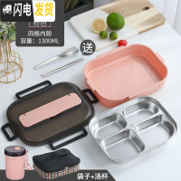 三维工匠304不锈钢保温饭盒1人便携上班族便当盒带盖分格日式学生分隔餐盒 加大号粉色[4格+送餐具+袋+汤杯]