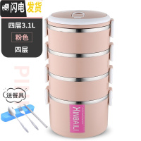 三维工匠不锈钢多层保温饭盒大容量韩国学生便当盒2女3上班族简约套装餐盒 加大款四层北欧粉送餐具