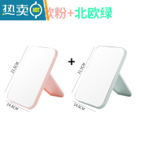 敬平化妆镜子台式梳妆镜子公主镜折叠便携大号网红简约随身宿舍桌面女 北欧粉+北欧绿便携式用镜