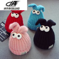 秋冬3个月-2岁宝宝儿童加厚加绒毛线帽子贴布耳朵帽子大眼睛帽子
