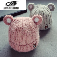秋冬3个月-3岁宝宝儿童帽子加厚毛线帽贴标耳朵帽子婴幼儿套头帽
