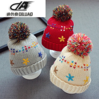 秋冬1-3岁宝宝儿童加厚护耳毛线帽子韩版毛球帽婴幼儿保暖套头帽