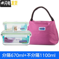 三维工匠上班族玻璃饭盒微波炉加热专用保鲜分隔型保温便当带盖 分隔670+1000[玫红包]