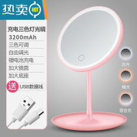 敬平led化妆镜带灯台式网红女补光小镜子ins风宿舍桌面便携小型梳妆鏡 少女粉充电款三色光灯镜3200毫安便携式用镜