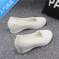 SUNTEK夏季坡跟防滑护士鞋平底白色凉鞋女夏塑料镂空妈妈鞋工作鞋洞洞鞋