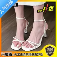 SUNTEK迪莎原创肯豆感细跟高跟鞋女2023年新款夏季白色方头细带一字凉鞋