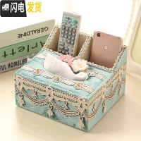 三维工匠欧式多功能纸巾盒客厅抽纸盒遥控器收纳盒布艺蕾丝桌面纸抽盒家用 琉璃-蓝色